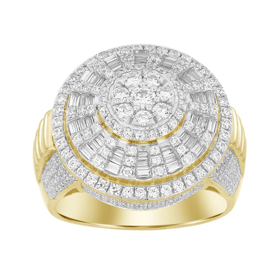 MEN'S RING 3.00CT ROUND/BAGUETTE DIAMOND 14K YELLOW GOLD