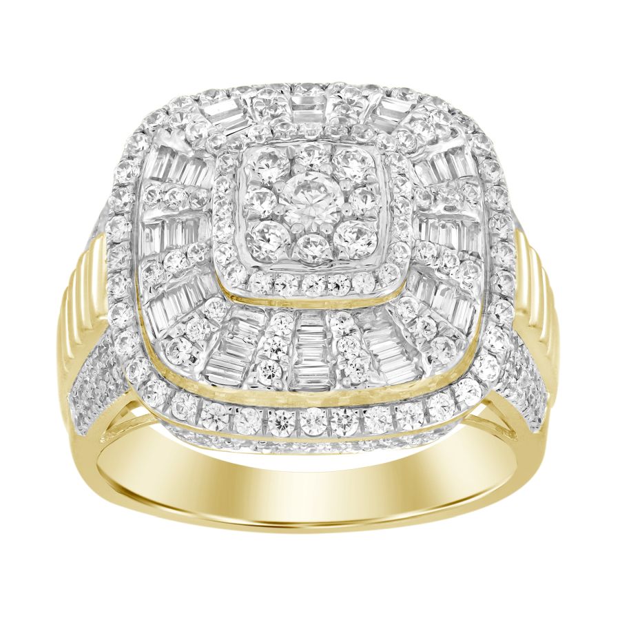 MEN’S RING 2.00CT ROUND/BAGUETTE DIAMOND 14K YELLOW GOLD
