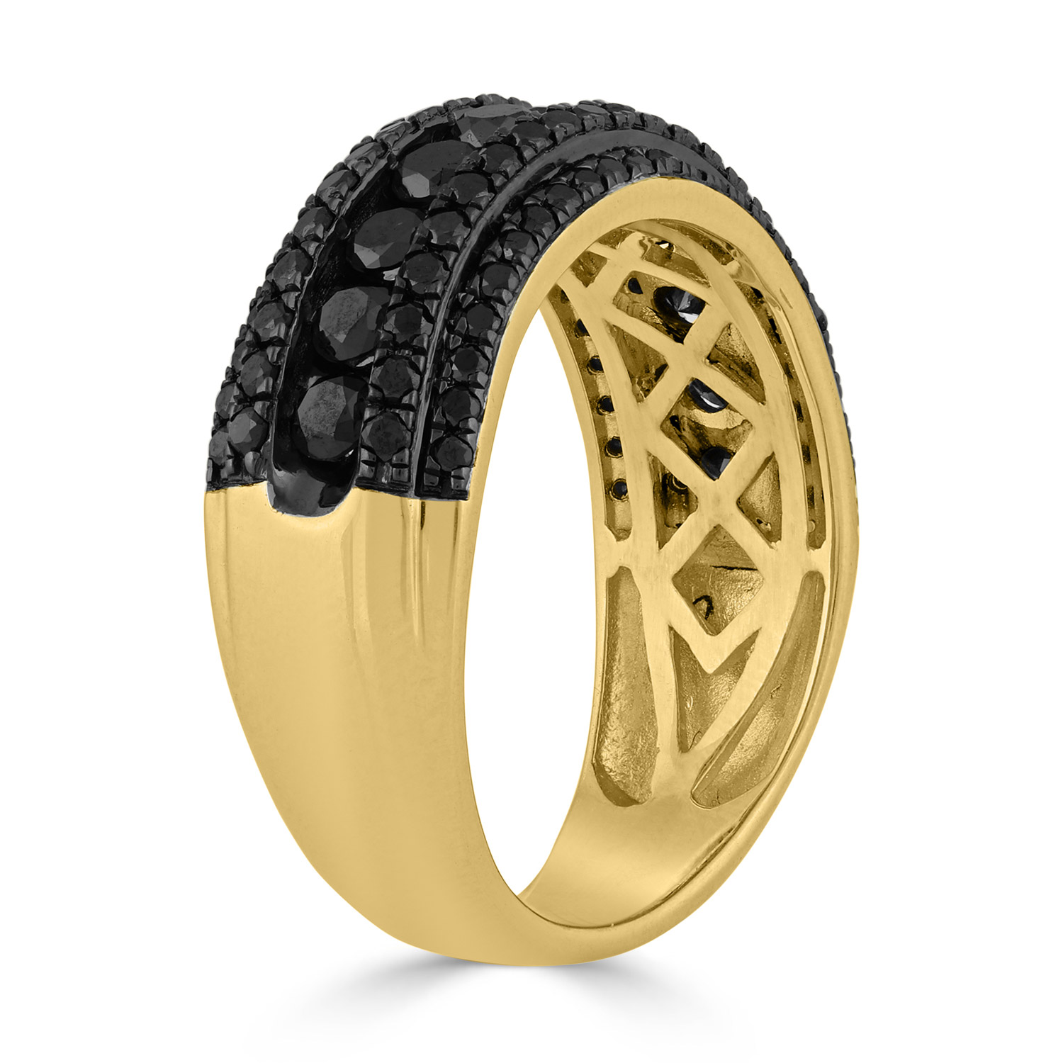 MEN'S RING 2.00CT ROUND BLACK DIAMOND 10K YELLOW GOLD
