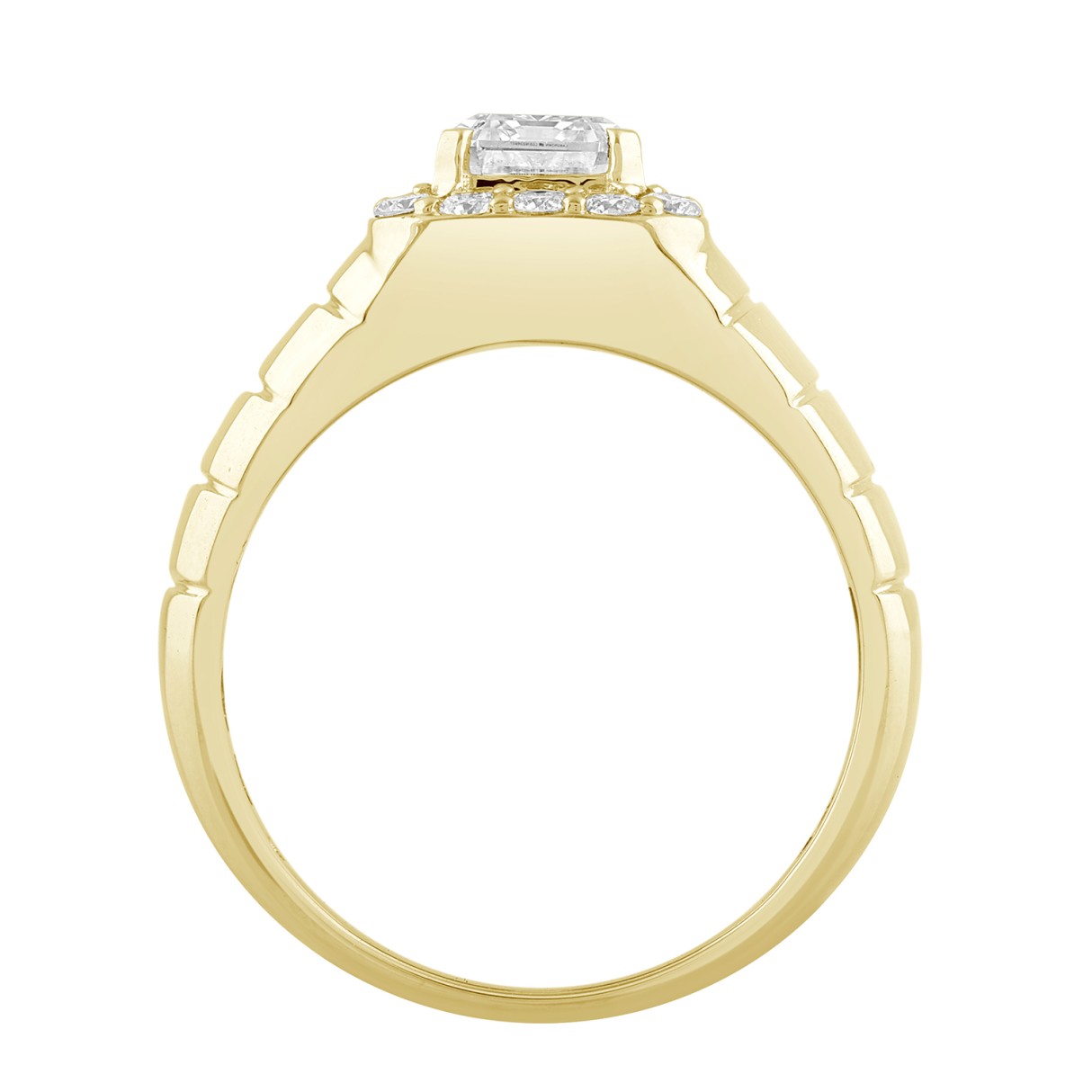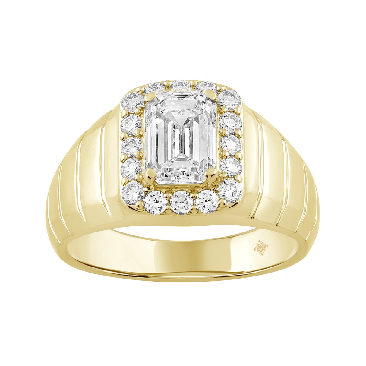 MEN’S RING 2 1/2CT ROUND/EMERALD DIAMOND 10K YELLOW GOLD