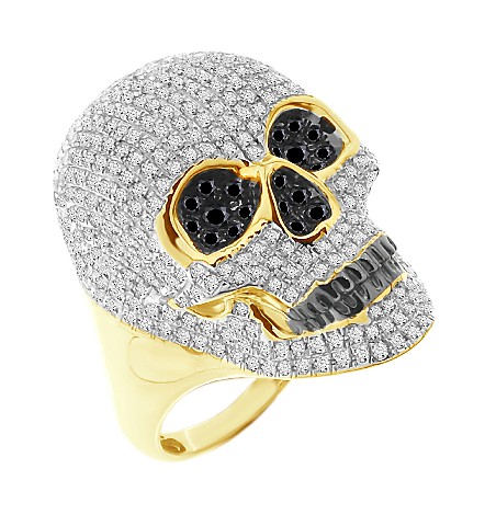 MEN’S RING 2.50CT ROUND BLACK DIAMOND 14K YELLOW GOLD