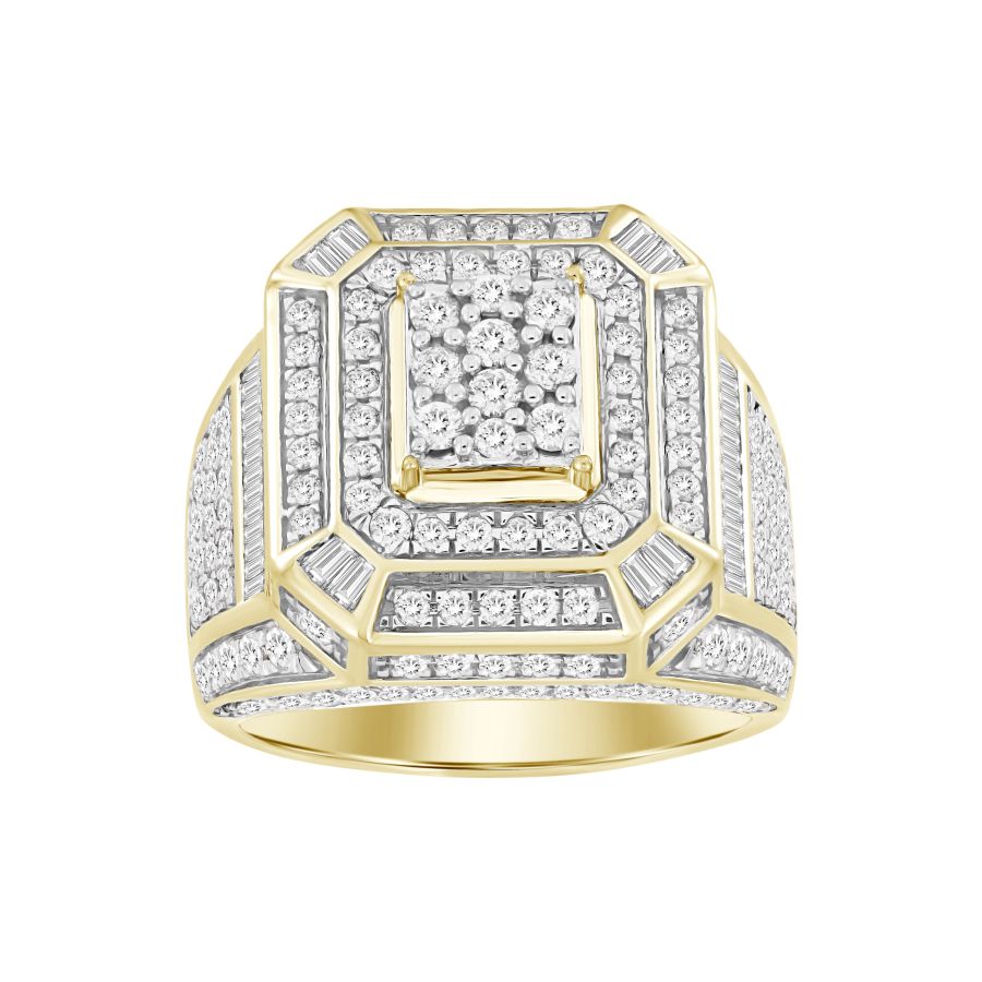 MEN’S RING 2.60CT ROUND/BAGUETTE DIAMOND 10K YELLOW GOLD