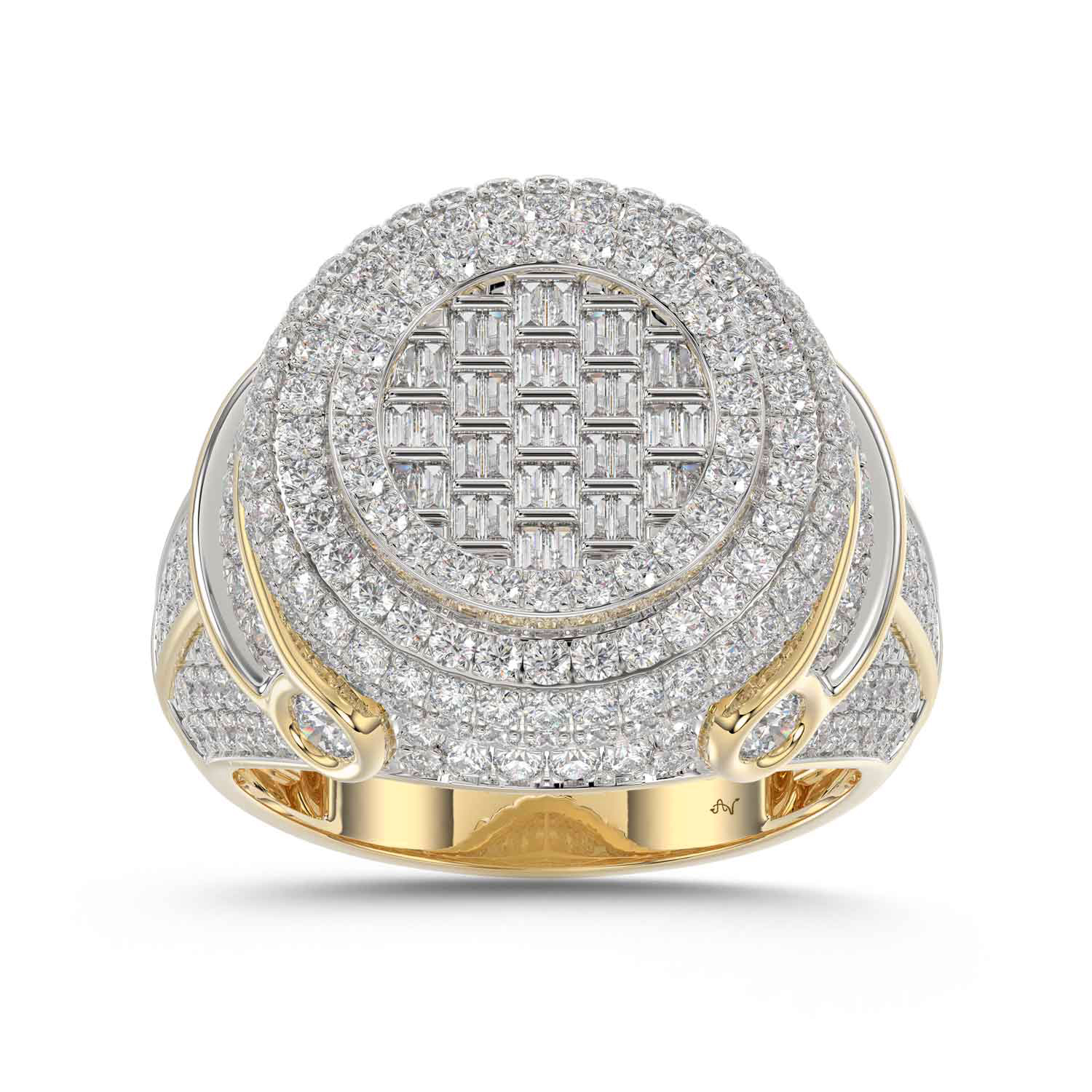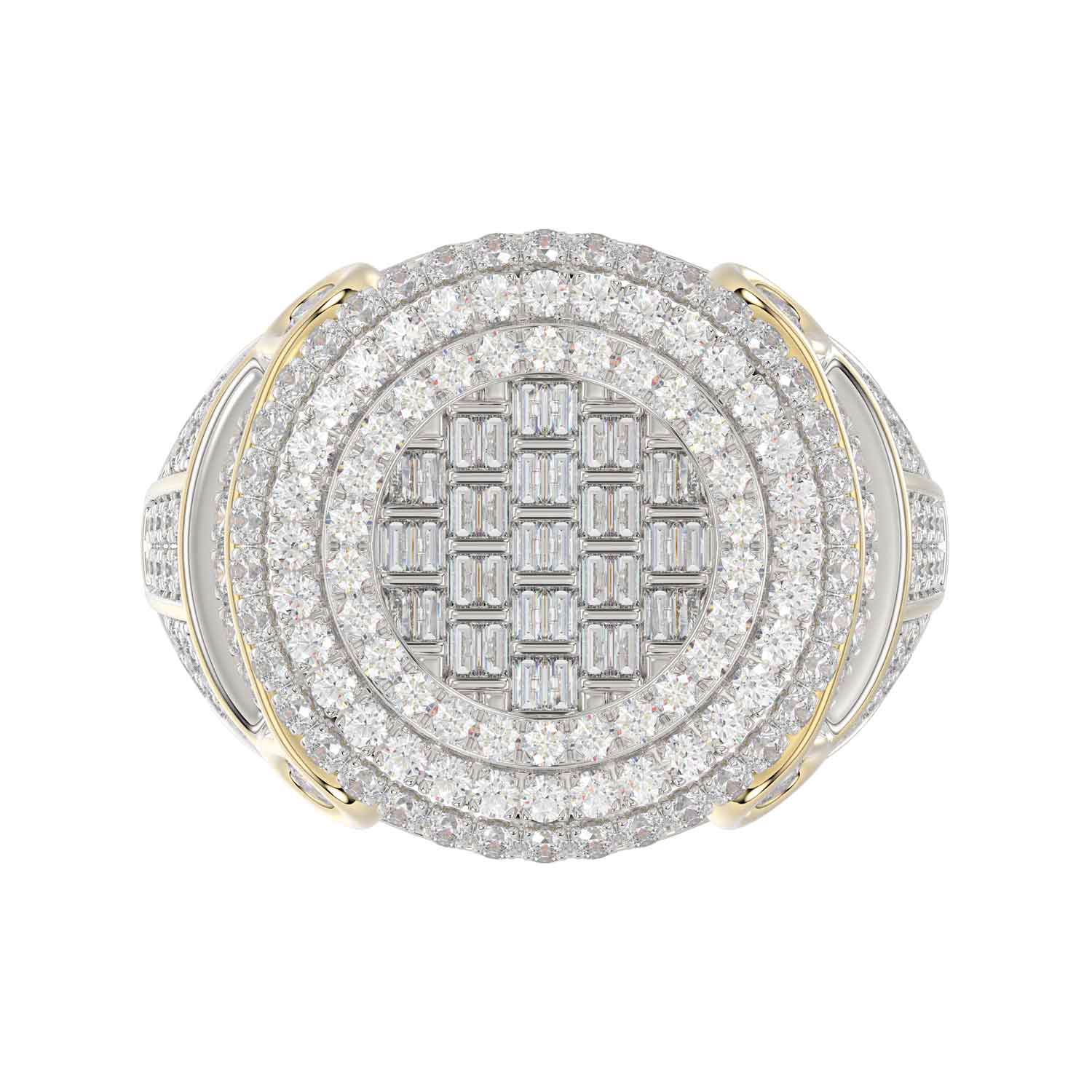 MEN'S RING 2.50CT ROUND/BAGUETTE DIAMOND 10K YELLOW GOLD
