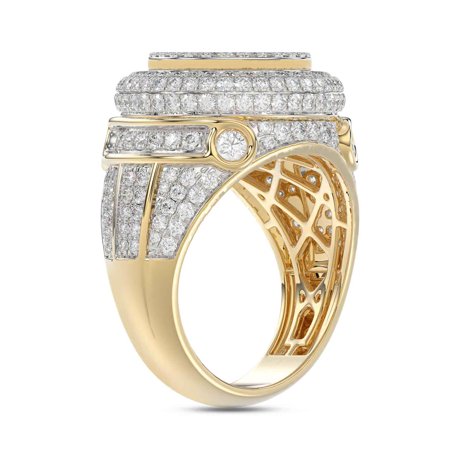 MEN’S RING 2.75CT ROUND/BAGUETTE DIAMOND 10K YELLOW GOLD