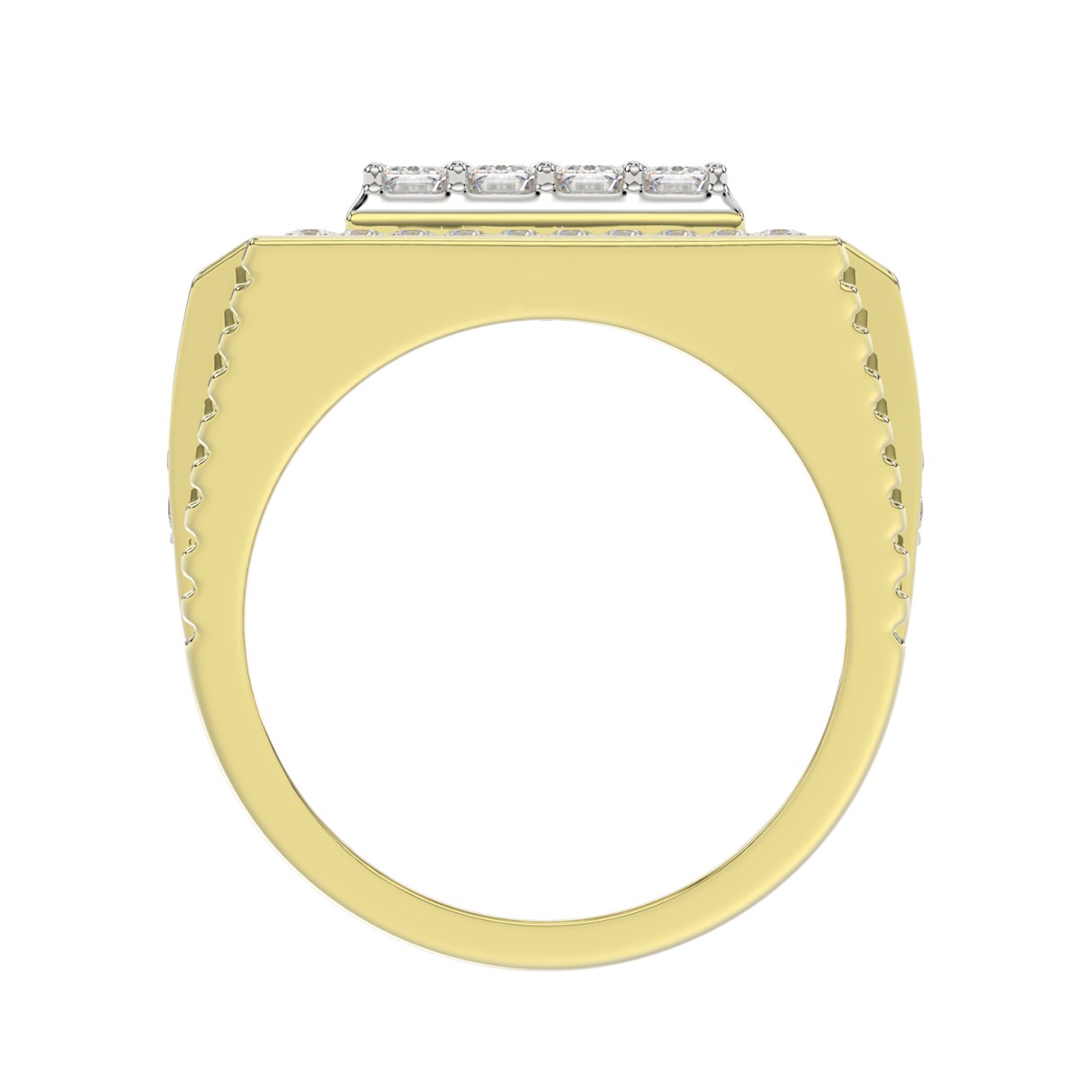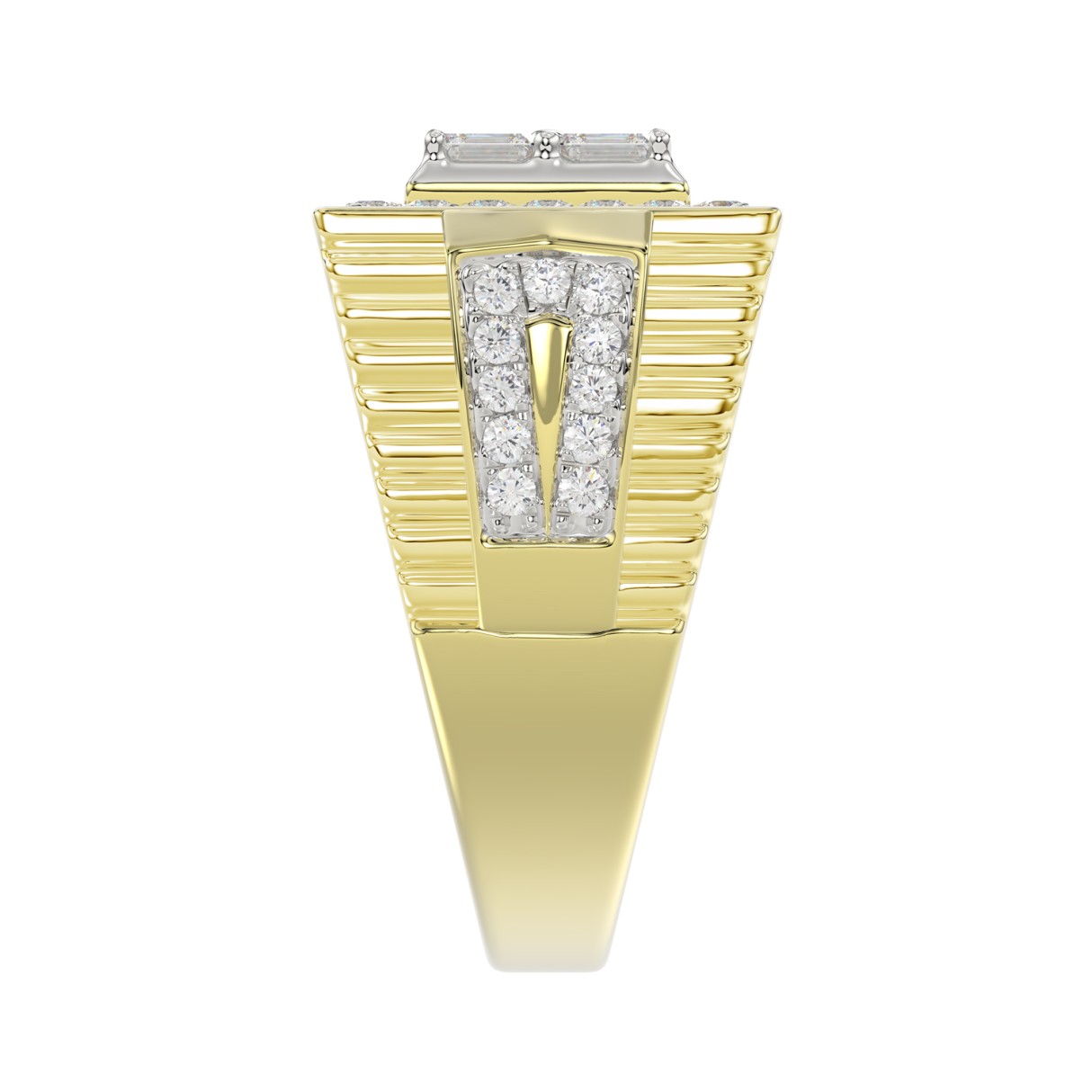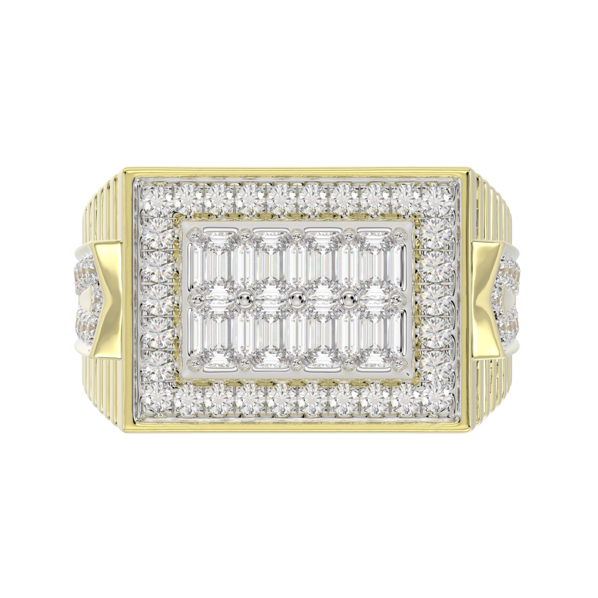 MEN’S RING 2CT ROUND/EMERALD DIAMOND 14K YELLOW GOLD