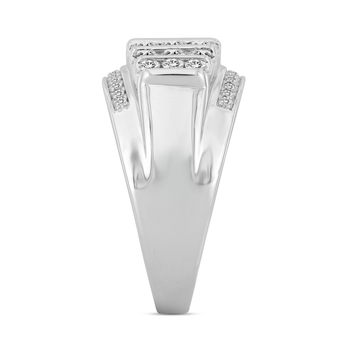 MEN’S RING 2CT ROUND/PRINCESS DIAMOND 14K WHITE GOLD