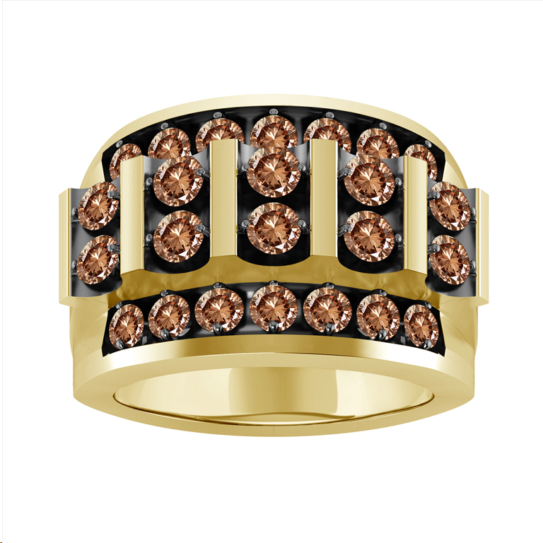 MEN’S RING 3.00CT DARK BROWN/ROUND DIAMOND 10K YELLOW GOLD