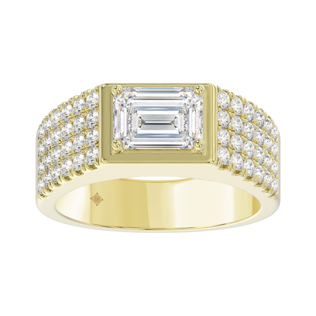 MEN’S RING 3CT EMERALD/ROUND DIAMOND 14K YELLOW GOLD (CENTER STONE EMERALD DIAMOND 2CT )