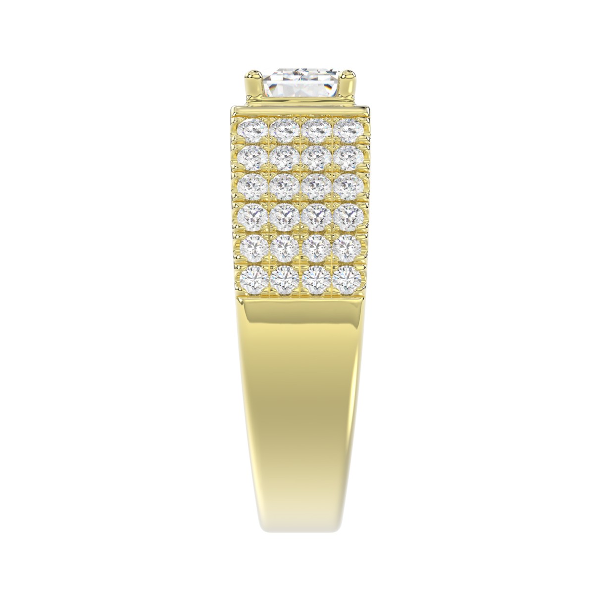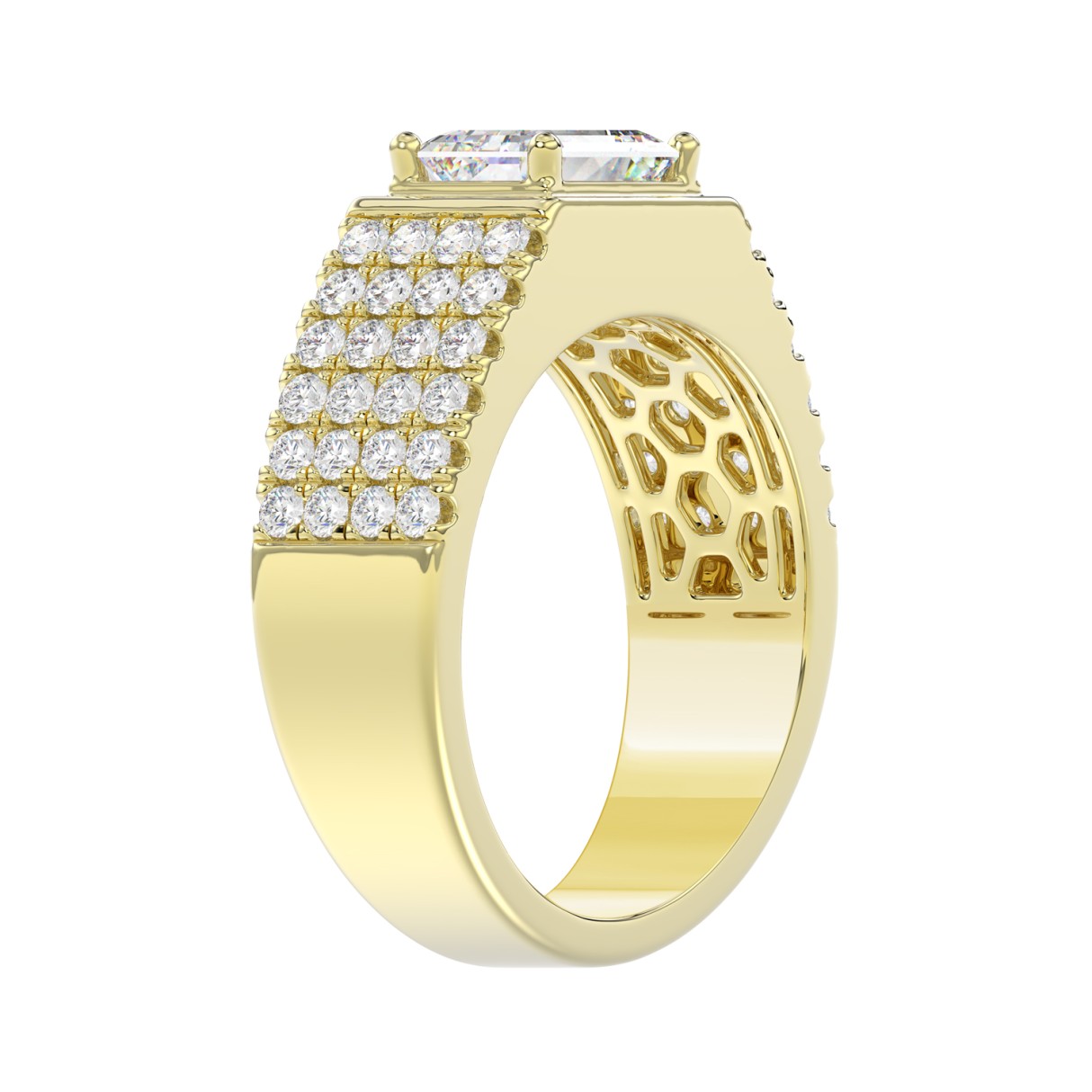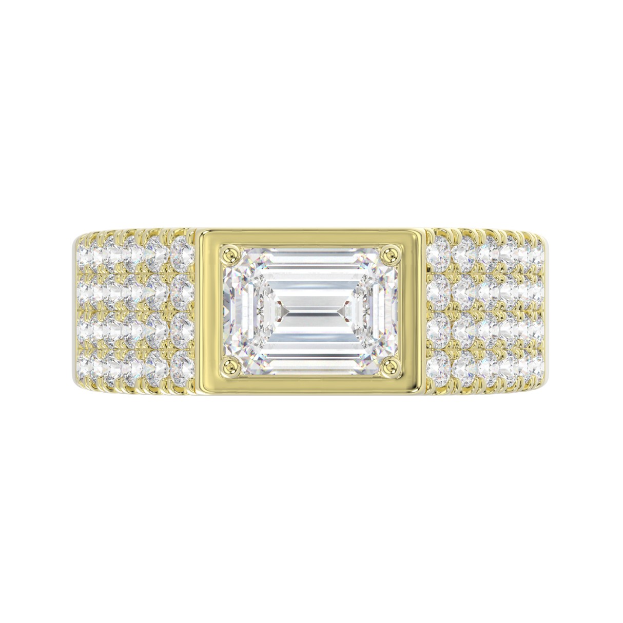 MEN’S RING 3CT EMERALD/ROUND DIAMOND 14K YELLOW GOLD (CENTER STONE EMERALD DIAMOND 2CT )