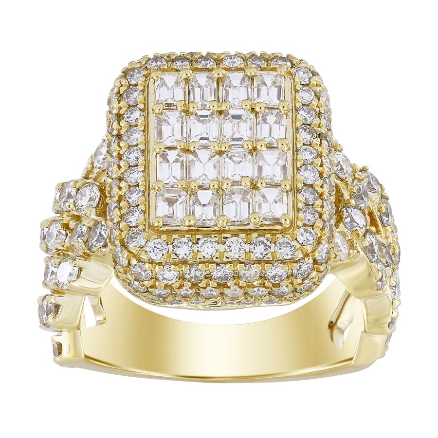 MEN’S RING 4.85CT ROUND/EMERALD DIAMOND 14K YELLOW GOLD