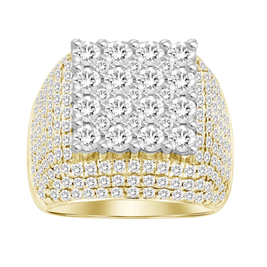 MEN'S RING 4.10CT ROUND DIAMOND 10K YELLOW GOLD