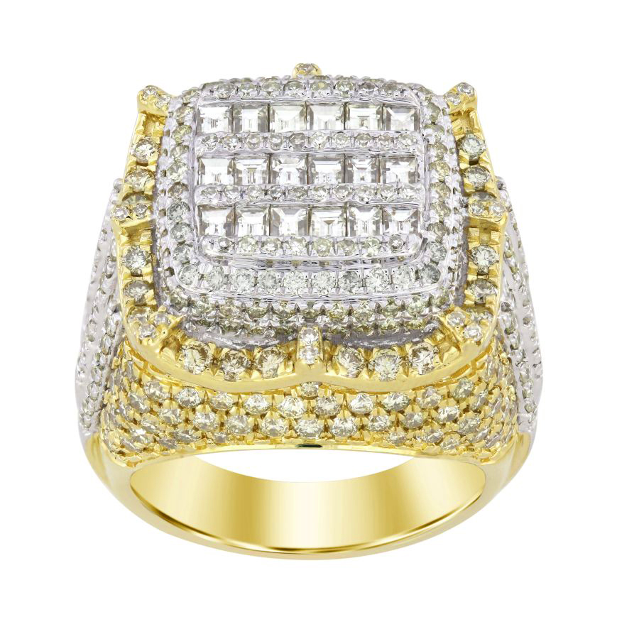 MEN’S RING 5.30CT ROUND/BAGUETTE DIAMOND 10K WHITE/YELLOW GOLD