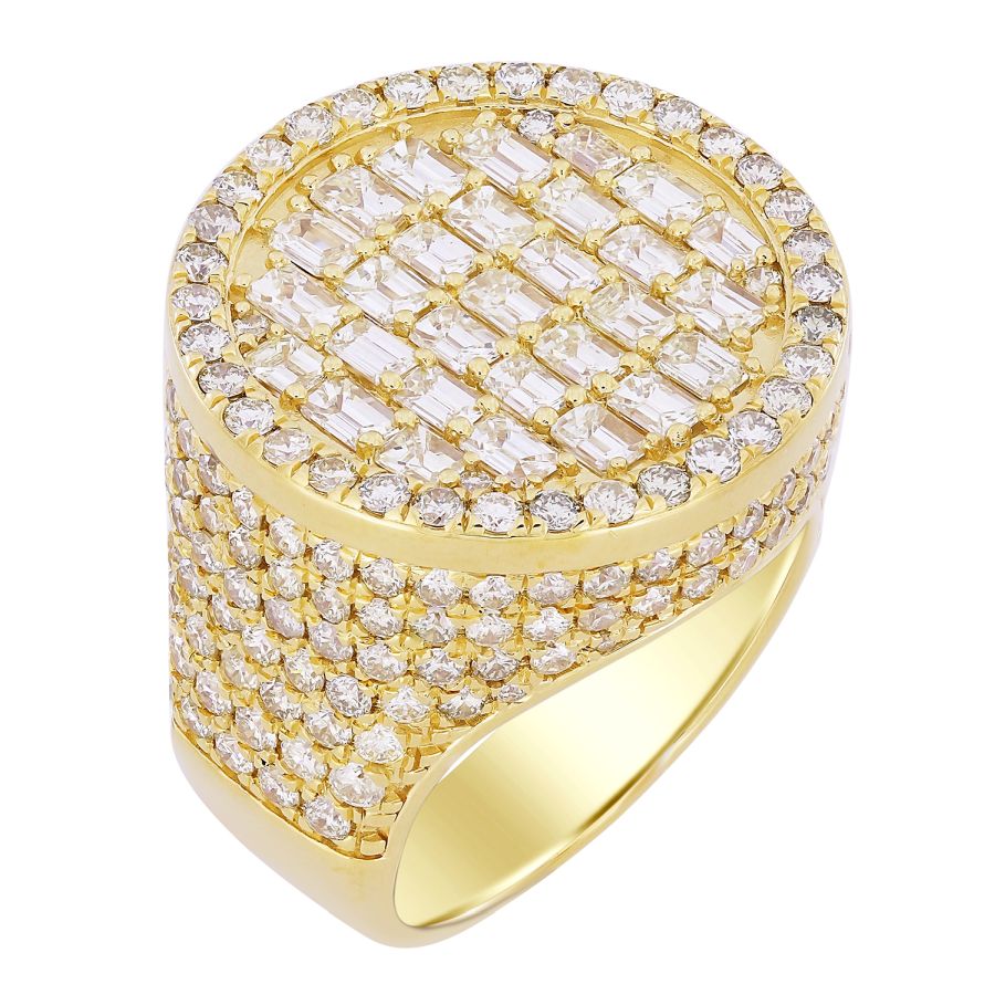 MEN’S RING 7.00CT ROUND/EMERALD DIAMOND 10K YELLOW GOLD
