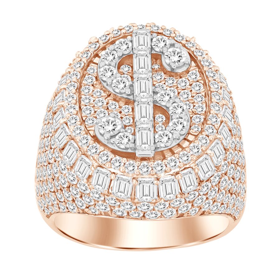 MEN'S RING 7.15CT ROUND/EMERALD DIAMOND 10K ROSE GOLD $10,159.99