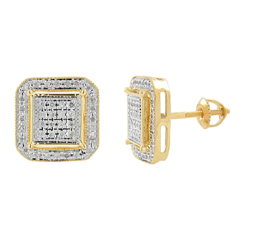 MEN’S STUD EARRINGS 0.25CT ROUND DIAMOND 10K YELLOW GOLD