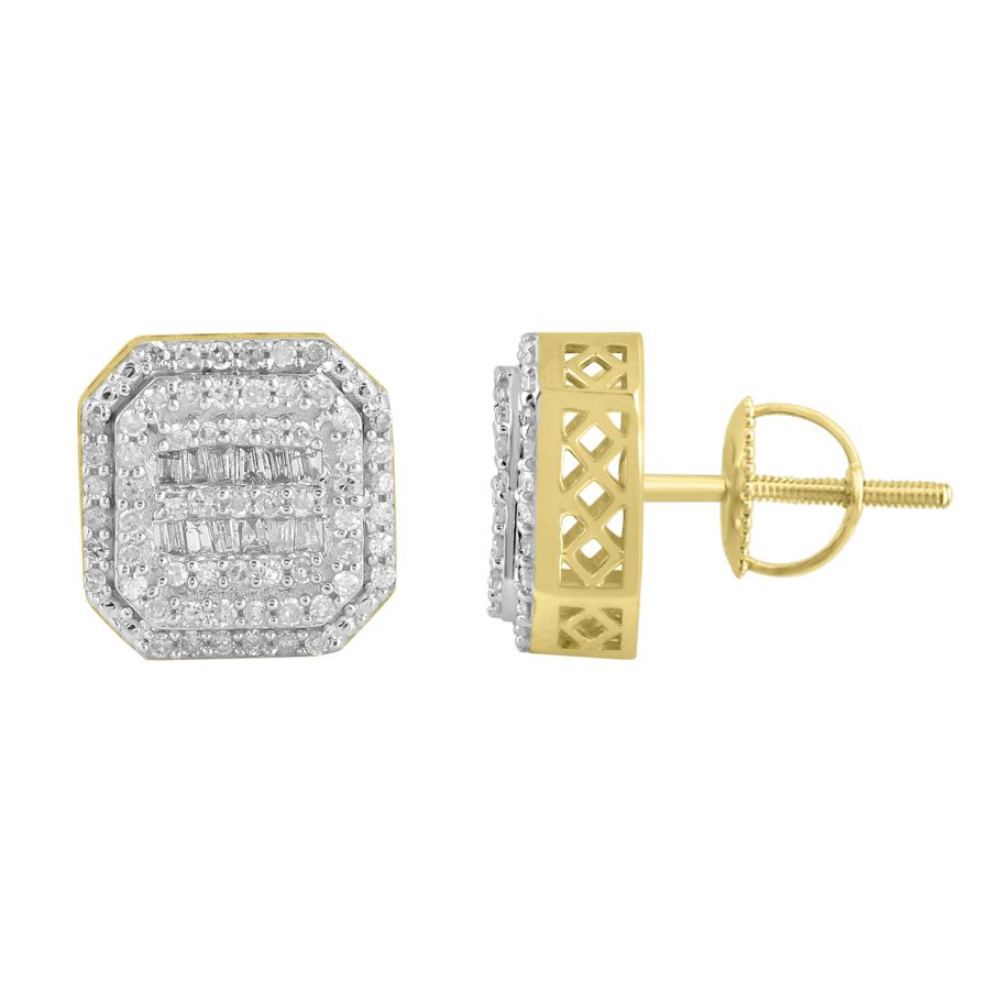 MEN’S STUD EARRINGS 0.50CT ROUND/BAGUETTE DIAMOND 14K YELLOW GOLD