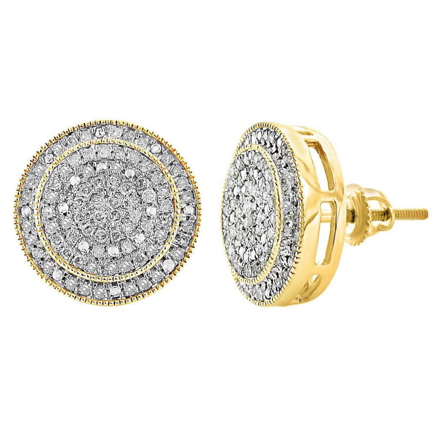 MEN’S STUD EARRINGS 0.50CT ROUND DIAMOND 10K YELLOW GOLD