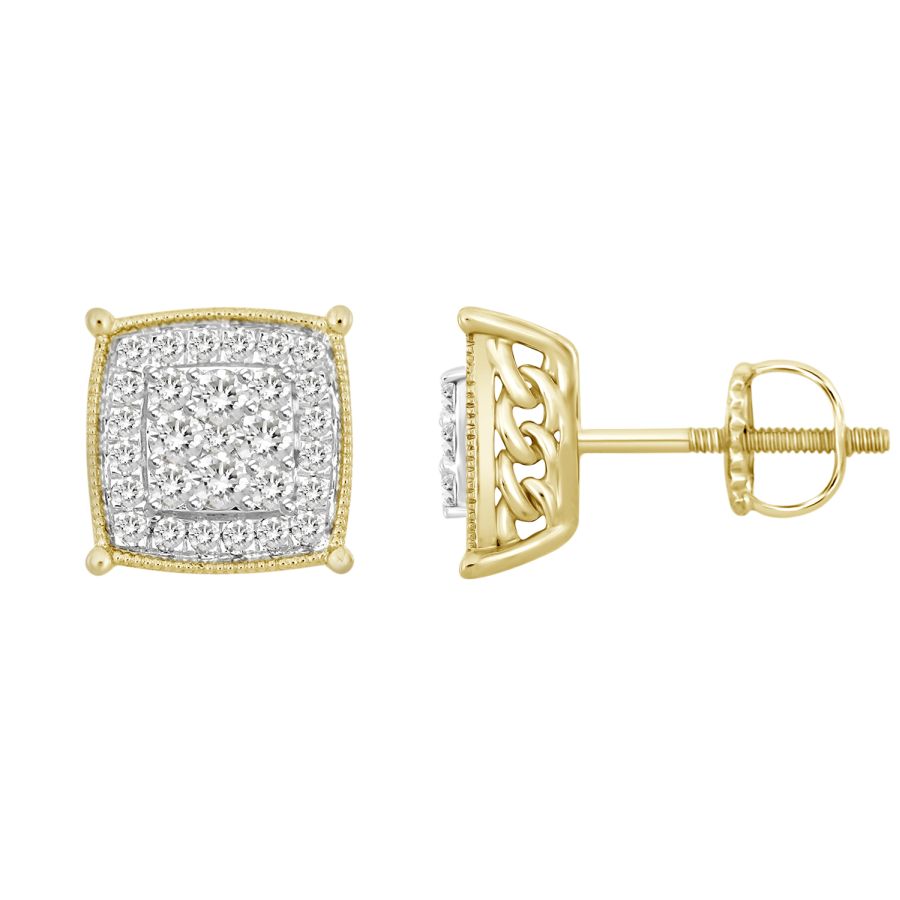 MEN’S STUD EARRINGS 1.00CT ROUND DIAMOND 10K YELLOW GOLD