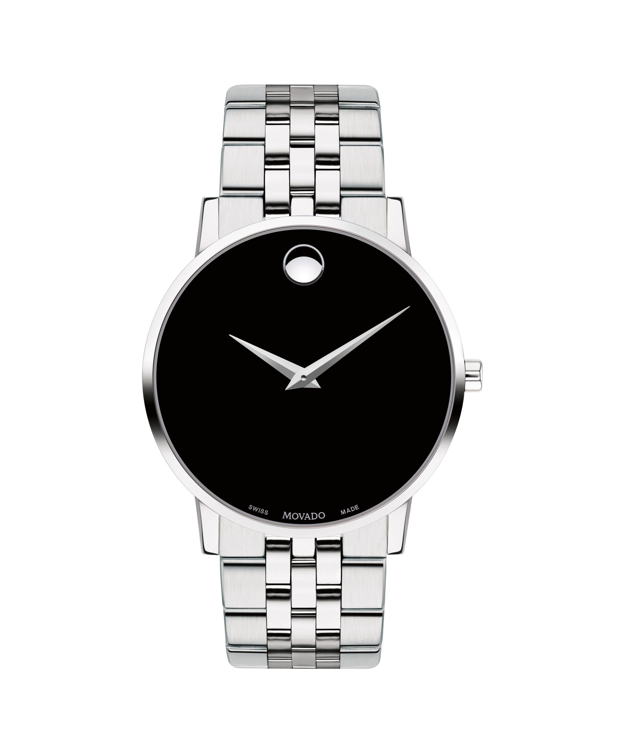 Men’s Museum Classic watch, 40 mm stainless steel case, black Museum dial with silver-toned dot and hands, stainless steel link bracelet with push-button deployment clasp.