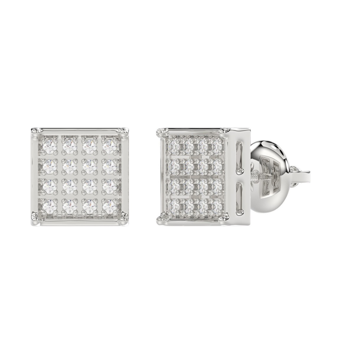 Sterling Silver White 0.10CT Round Diamond Yuva Square Cluster Earrings Women’S Fine Jewelry