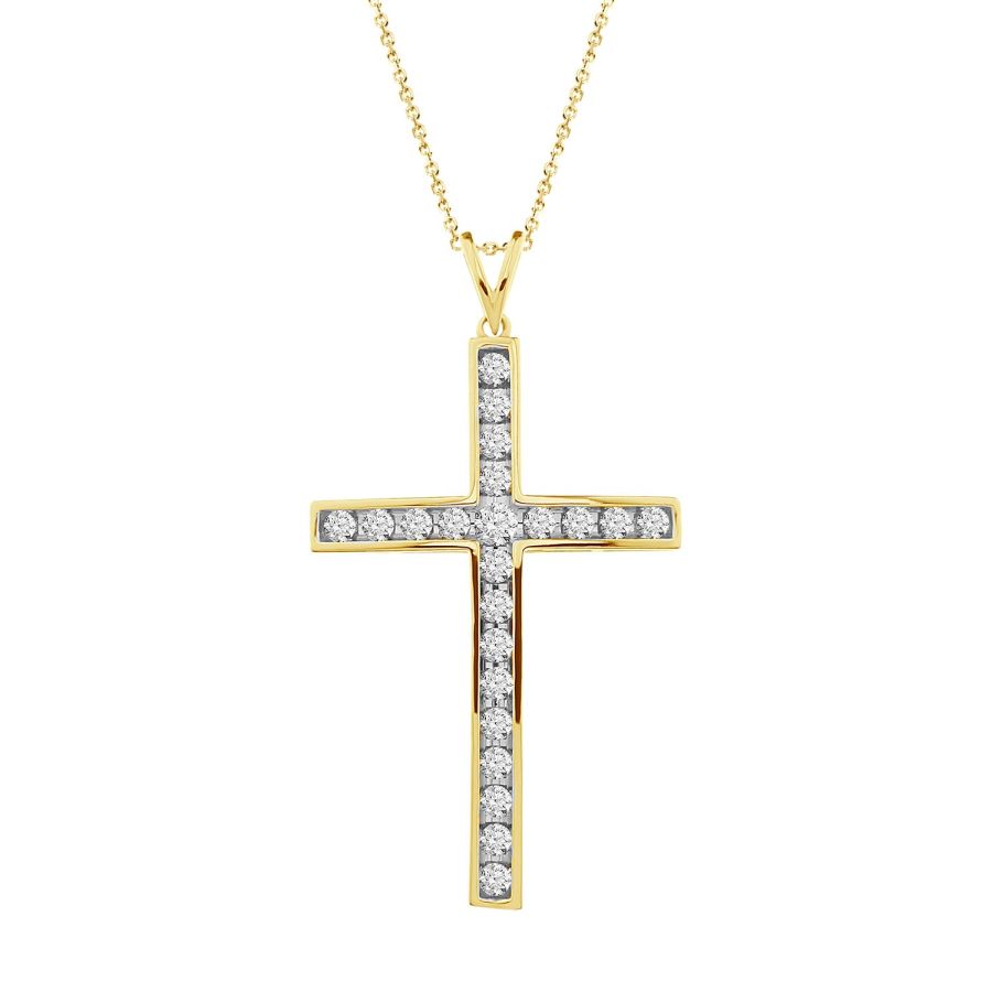 Home Pendants/charms STRAIGHT NICK SETTING CROSSES 1.00CT ROUND DIAMOND 14K YELLOW GOLD