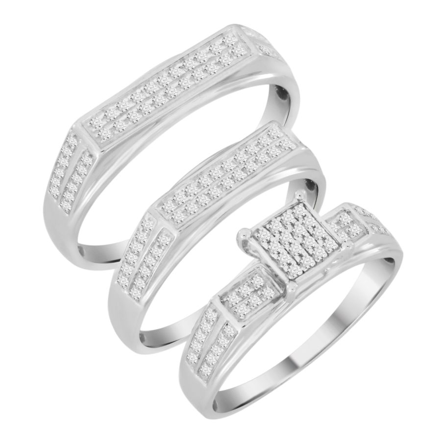 Home Rings UNISEX TRIOS SET 0.45CT ROUND DIAMOND STERLING SILVER