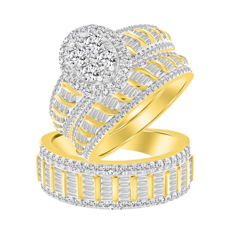 UNISEX TRIOS SET 2.00CT ROUND/BAGUETTE DIAMOND 10K YELLOW GOLD