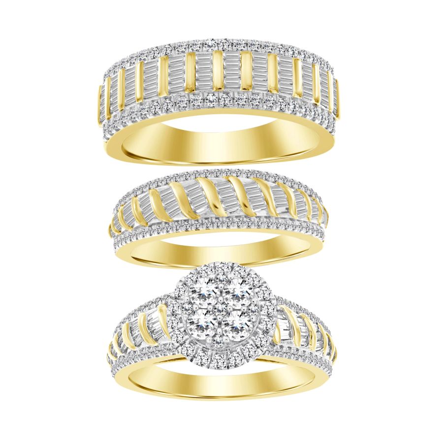 UNISEX TRIOS SET 2.00CT ROUND DIAMOND 10K YELLOW GOLD