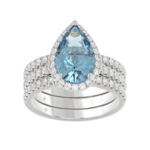 14K WHITE GOLD 4.00CT ROUND/PEAR DIAMOND LADIES BRIDAL SET (CENTER STONE PEAR BLUE DIAMOND 3.00CT)