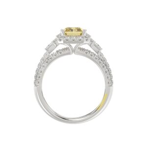 14K WHITE GOLD CRAFTED WITH 18K YELLOW GOLD SHANK 3.00CT ROUND/BAGUETTE/YELLOW RADIANT DIAMOND LADIES RING (CENTER STONE RADIANT YELLOW DIAMOND 2.00CT
