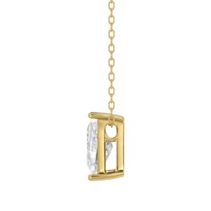 14K YELLOW GOLD 1.00CT ROUND DIAMOND LADIES SOLITAIRE PENDANT WITH UNDER-PASS CHAIN (CENTER STONE ROUND DIAMOND 1CT)