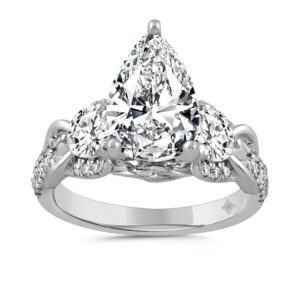 LADIES RING 5 1/4CT ROUND/ PEAR DIAMOND 14K WHITE GOLD (CENTER STONE PEAR DIAMOND 3CT )
