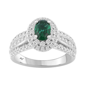 LADIES RING 1.50CT EMERALD/DARK BROWN/ROUND DIAMOND 14K ROSE GOLD(CENTER STONE 0.88CT EMERALD DIAMOND)